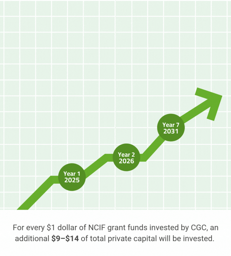 As noted in the workplan submitted to EPA, CGC planned to invest the majority of the $5 billion NCIF grant within one year because the sooner the funds can be deployed, the bigger the impact they can have. By rapidly and prudently deploying its grant funds and reinvesting the returns, CGC is focused on creating a sustainable, long-term financial institution that is focused on maximizing impact. This “recycling of funds” will expedite, multiply, and maximize the benefits of the public’s initial investment.