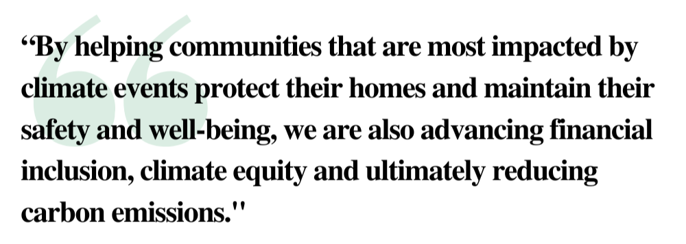 “We allow funding for roof repair, hurricane shutters, impact windows and doors because we understand the holistic approach that is required to serve low-and-moderate income communities,” she said. “By helping communities that are most impacted by climate events protect their homes and maintain their safety and well-being, we are also advancing financial inclusion, climate equity and ultimately reducing carbon emissions.”
